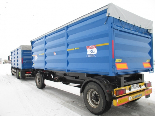 Прицеп Krone двухосный. Шасси прицепа пригнано из Германии. Год выпуска 2008. По дорогам Украина не эксплуатировался. Электро и пневмо система исправна. Кузов новый, производства ООО "Завод Алеко", бортовой, рабочая правая и задняя сторона. Габариты кузова: длина 6,9, ширина 2,6, высота 1,9. (33 куб).